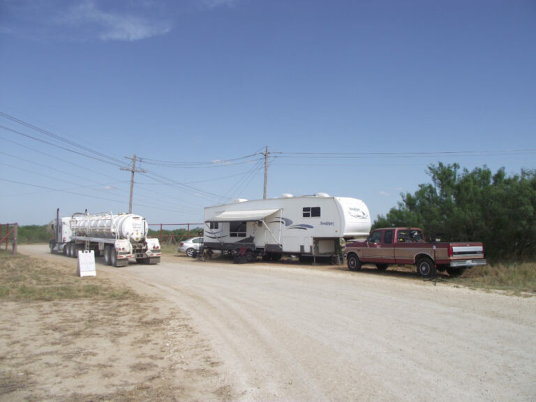 Sheesh, Texas is HUGE! Despite the exhaustion from all the driving, we set up our 5th wheel at our new location. Our manager helped us get hooked up to the water tank and generator the guard company provided. The above-ground, gray/black water holding tank was to be delivered the following day but didn’t come for two days. Thankfully we had emptied our tanks before leaving the RV park that morning.
